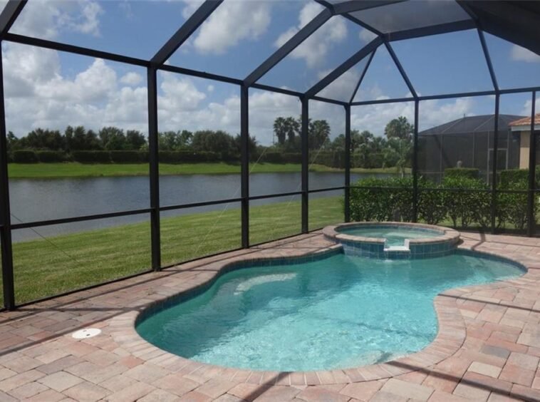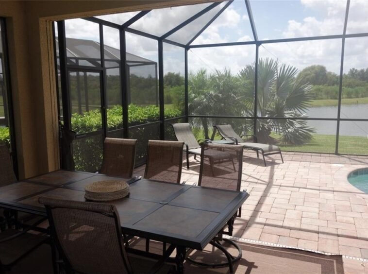 LAKE FRONT POOL HOME IN RIVER STRAND available in the Manor homes section of RIVER STRAND! Check out this completely turnkey furnished, very well maintained 3BR/2B with combo living & dining rooms; also, large bathroom includes dual sinks, walk in shower, garden tub. Beautiful outdoor area with pool overlooking lake with southern exposure. Golf membership is yours when you rent this home! Pay fee $325 TO RIVER STRAND FOR TRANSFER FEES PLUS TAX and you have all amenities for the term of the lease. 27 hole Championship Golf Course designed by Arthur Hill, 3,500 sq. ft. state of the art health & fitness spa with a resort style pool, HarTru tennis courts with on-site tennis pro shop, or dine at the exquisite 39,000 sq. ft. Tuscan influenced clubhouse which offers formal & casual dining! Living in River Strand at Heritage Harbour is a great lifestyle! Security deposit, cleaning, tax, & pet deposit. Pets accepted. 30 day minimum rental policy. PROPERTY IS CURRENTLY BOOKED FOR MARCH 2020